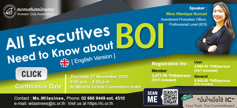 ชื่อหลักสูตร : All Executive Need to Know About BOI (English Version) (Onsite)