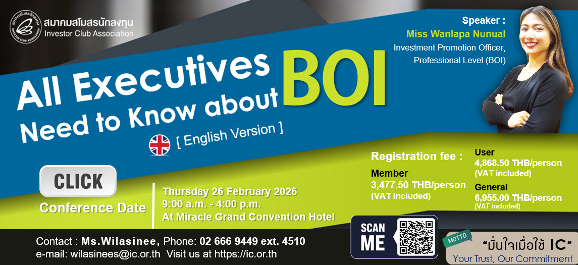 ชื่อหลักสูตร : All Executive Need to Know About BOI (English Version) (Onsite)