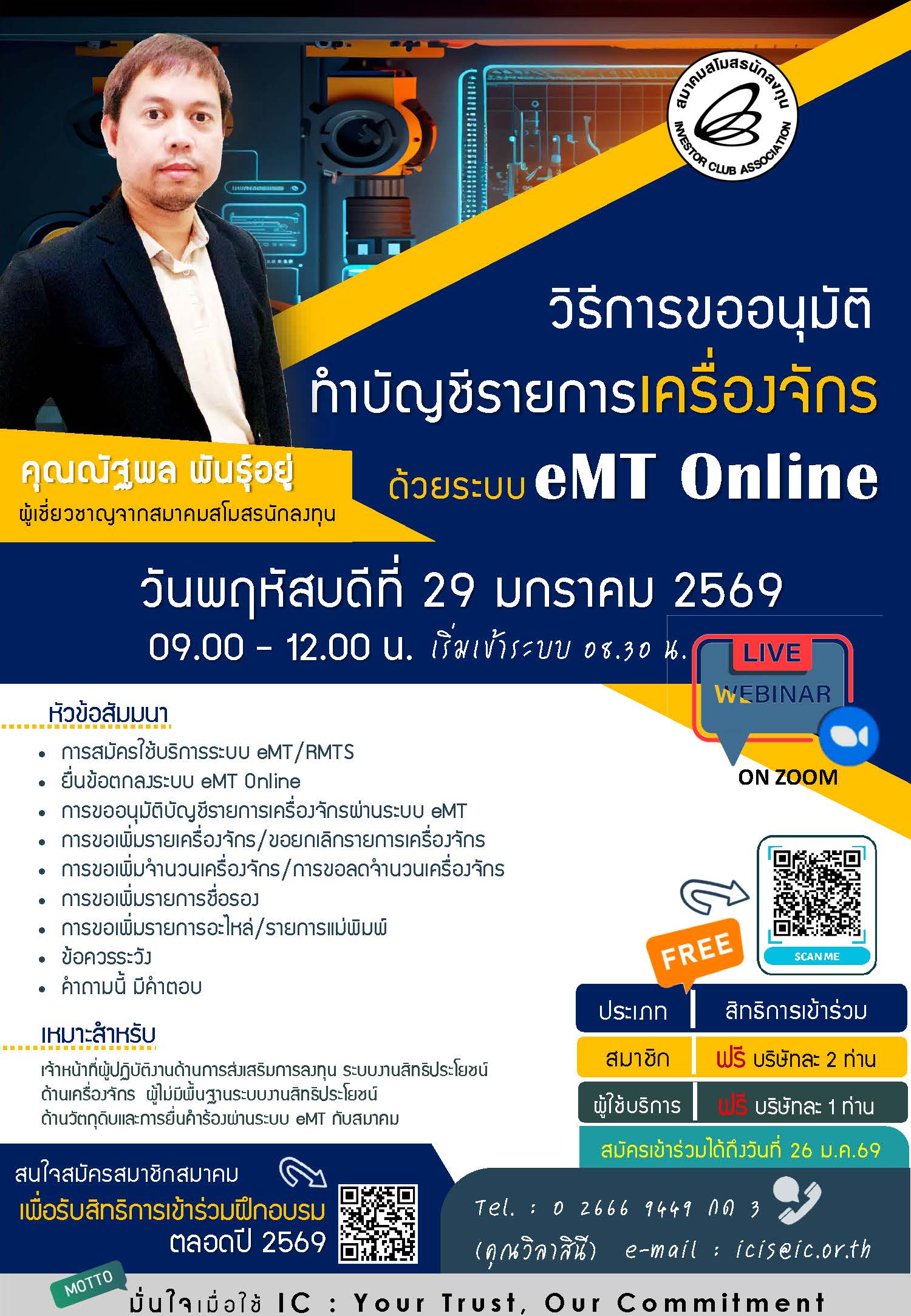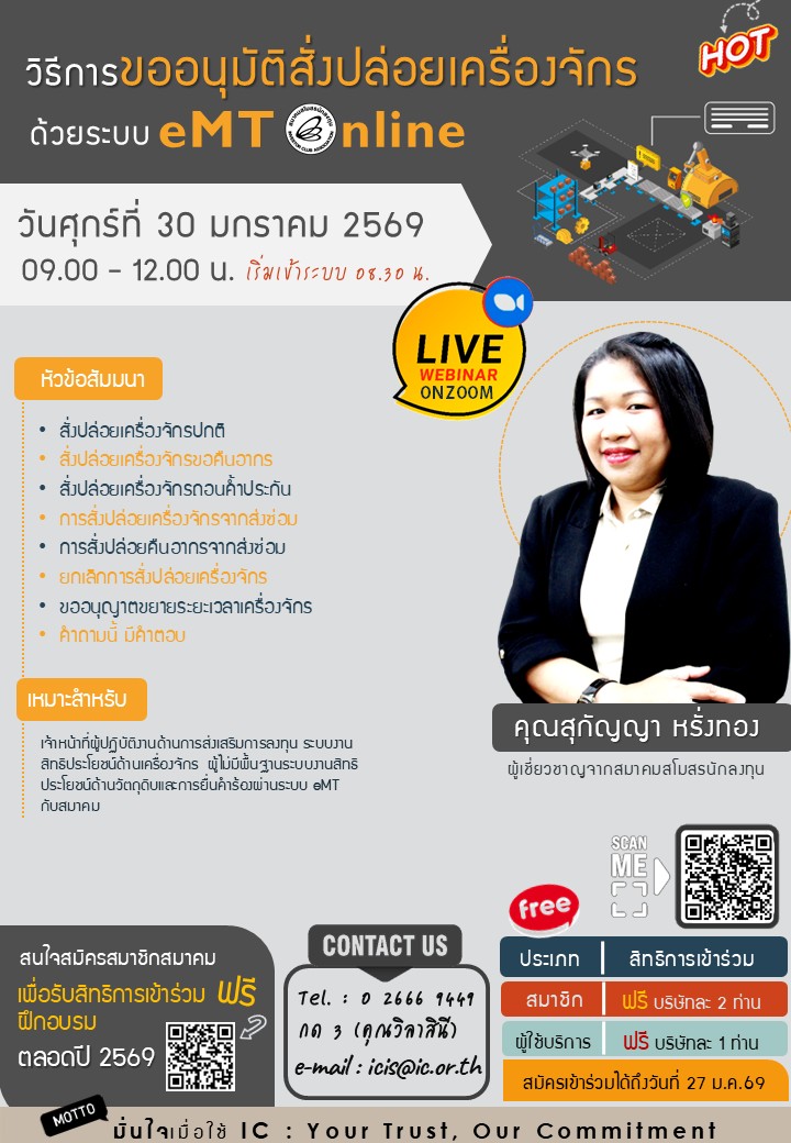วิธีการขออนุมัติทำบัญชีรายการเครื่องจักรด้วยระบบ eMT Online (ออนไลน์ผ่านโปรแกรม Zoom Webinar)