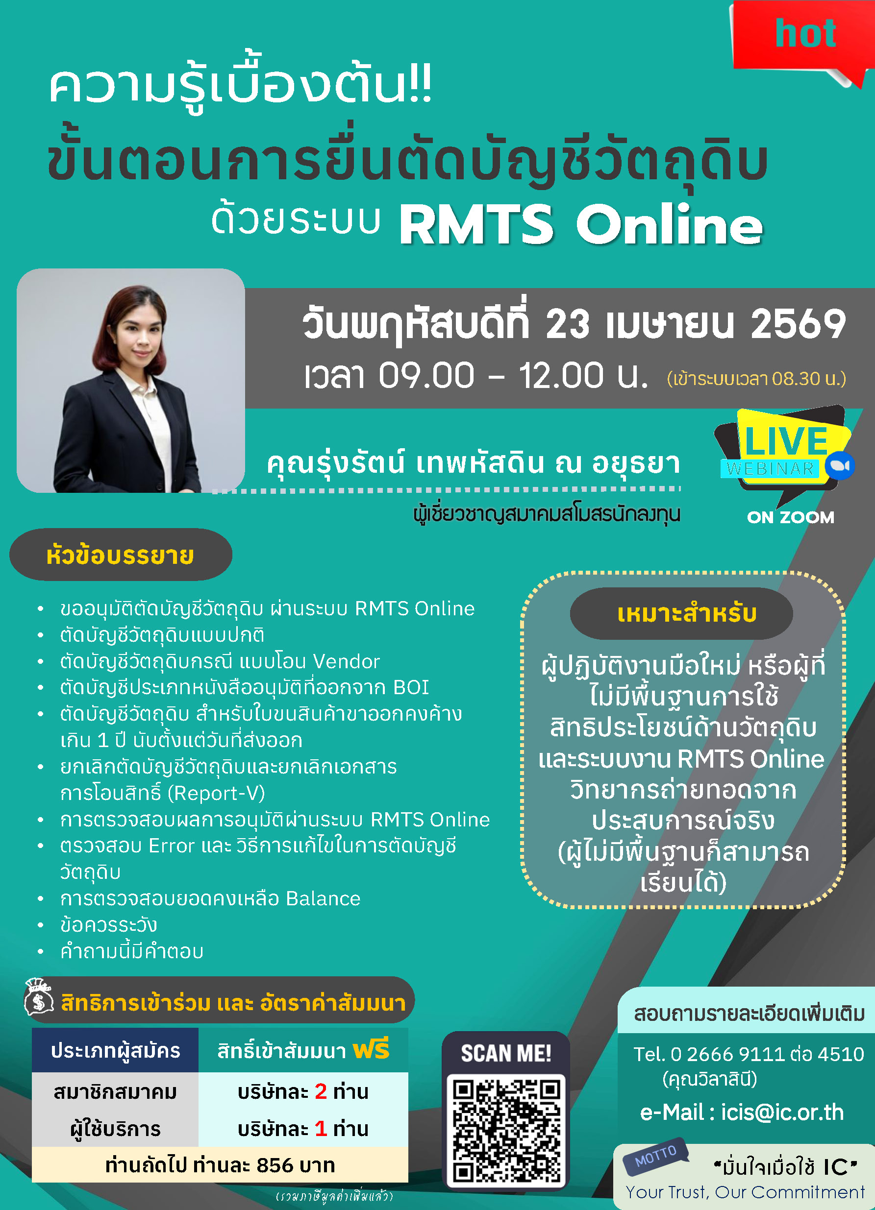 ผู้ปฏิบัติงานมือใหม่ หรือผู้ที่ไม่มีพื้นฐานการใช้สิทธิประโยชน์ด้านวัตถุดิบและระบบงาน RMTS Online วิทยากรถ่ายทอดจากประสบการณ์จริง (ผู้ไม่มีพื้นฐานก็สามารถเรียนได้)