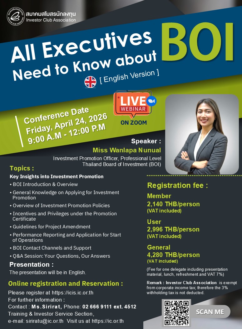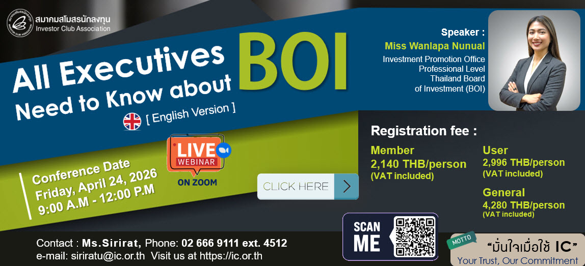 Seminar : All Executive Need to Know About BOI (English Version) (Online via Zoom Meeting Platform)